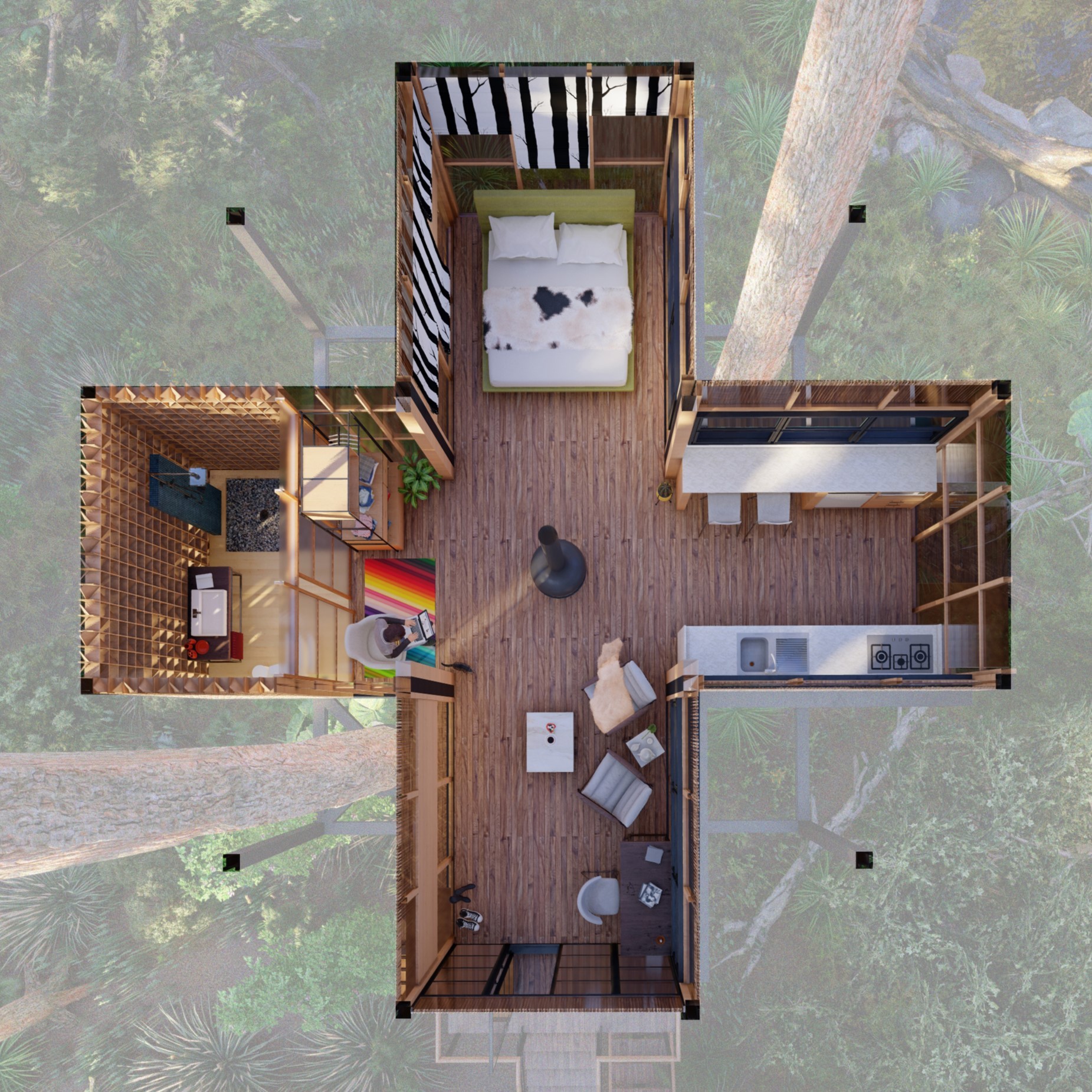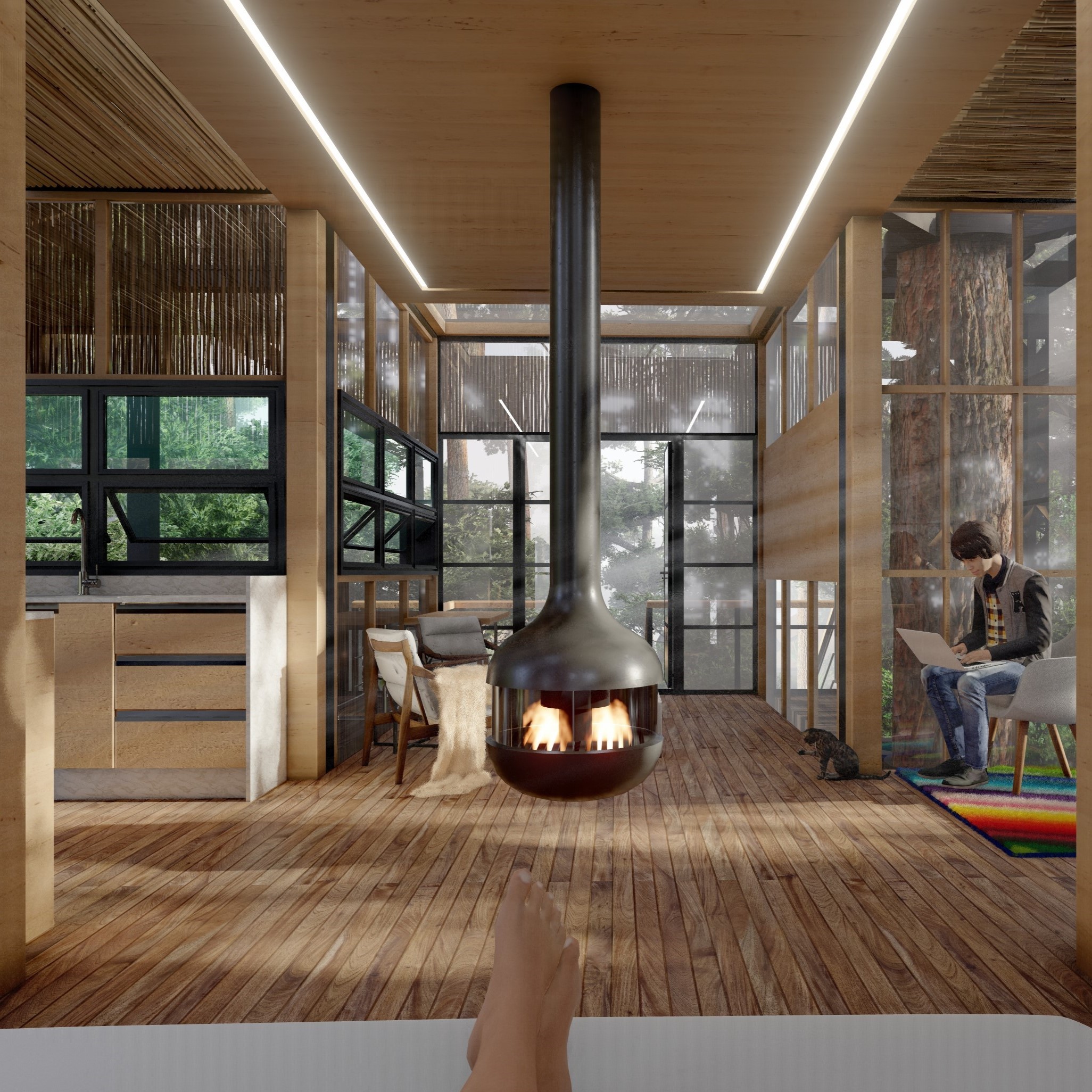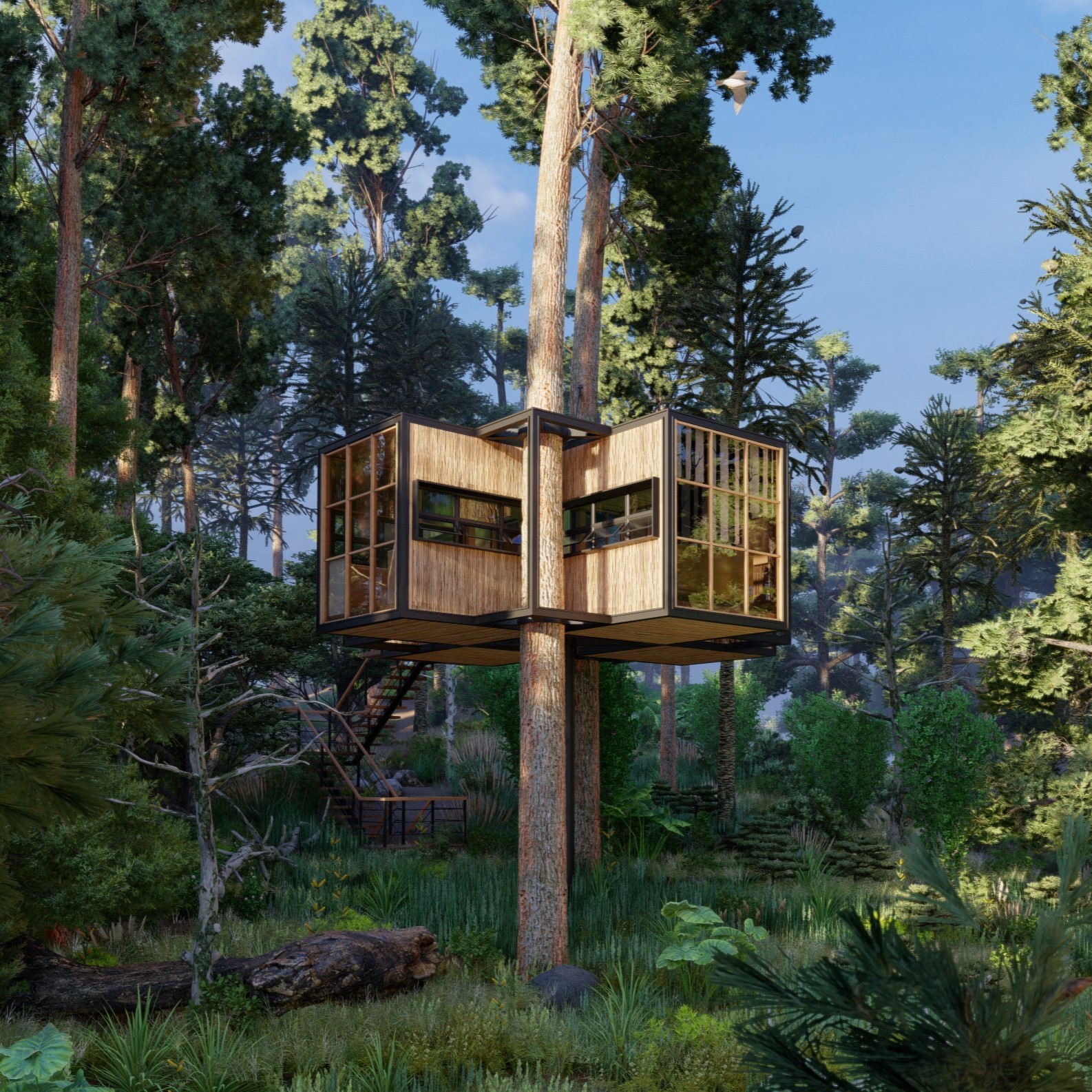 "Somewhere in the Woods" is a prefabricated tree house designed for the purpose of AirBnb. The challenge was to create a functional, scalable, and sustainable living space that harmoniously blends with the natural surroundings. Inspired by the beauty of the forest, the project focused on maximising the 360-degree view of the surrounding landscape. The design concept centres around the idea of appreciating the wild forest environment and creating an inside-out experience for the occupants. The tree house is built with a minimalistic and eco-friendly approach, utilizing locally sourced materials and tree bark measurements to ensure a seamless integration with the surrounding trees. Prefabricated units are designed while considering the scalability with minimum ground cover. Isn’t it a perfect getaway somewhere in the woods?
