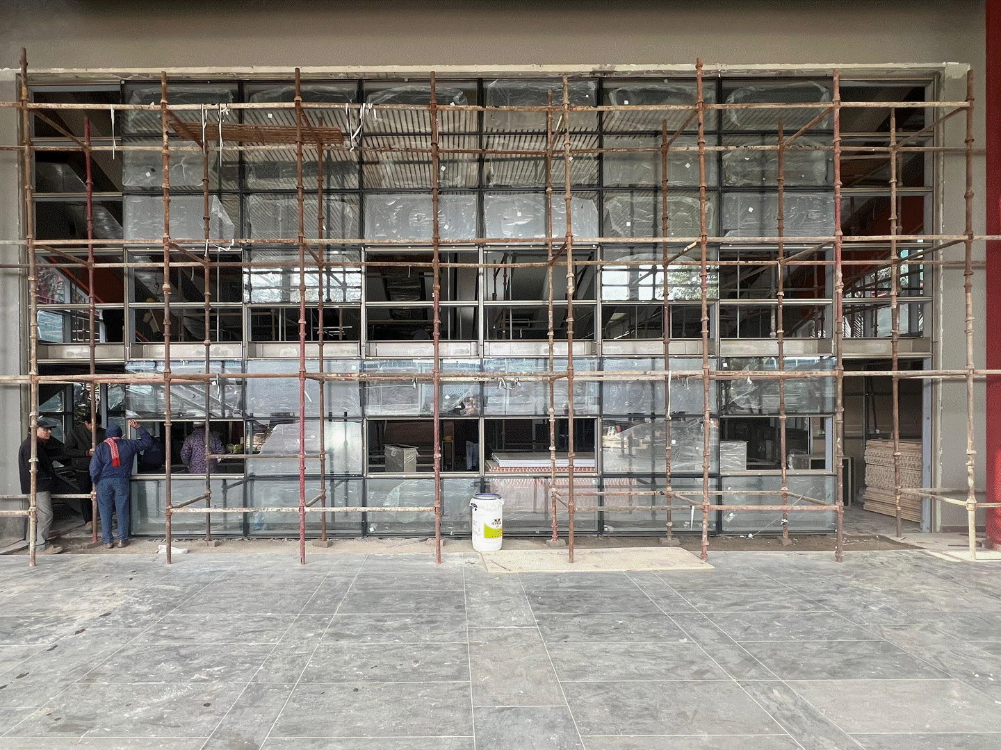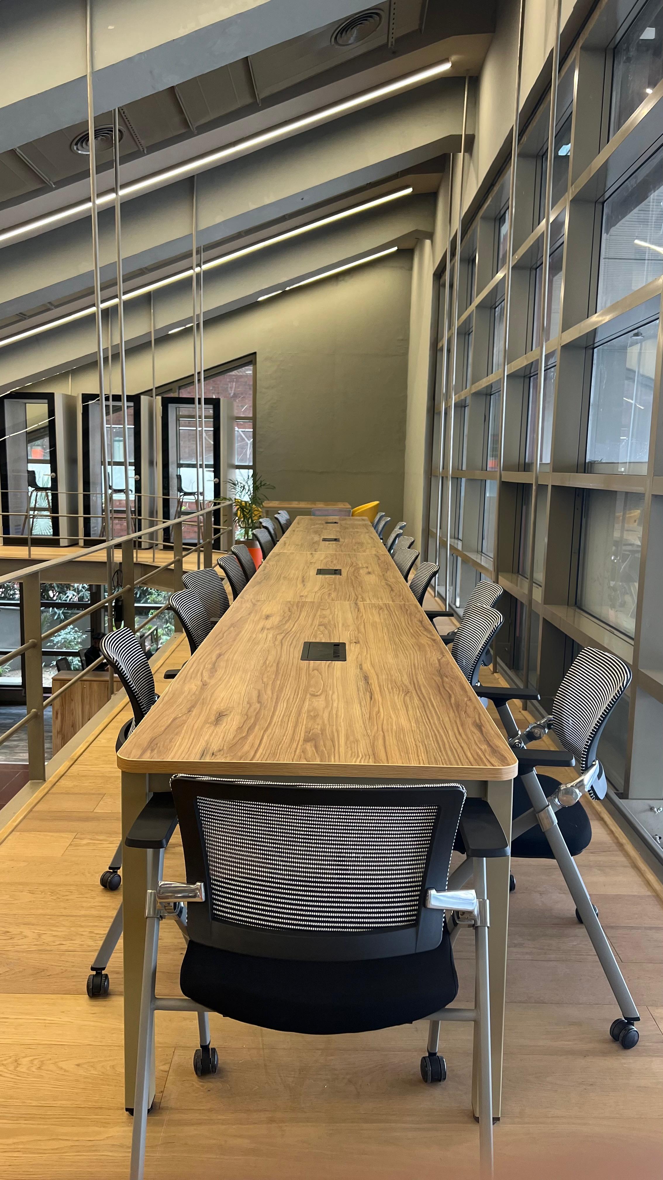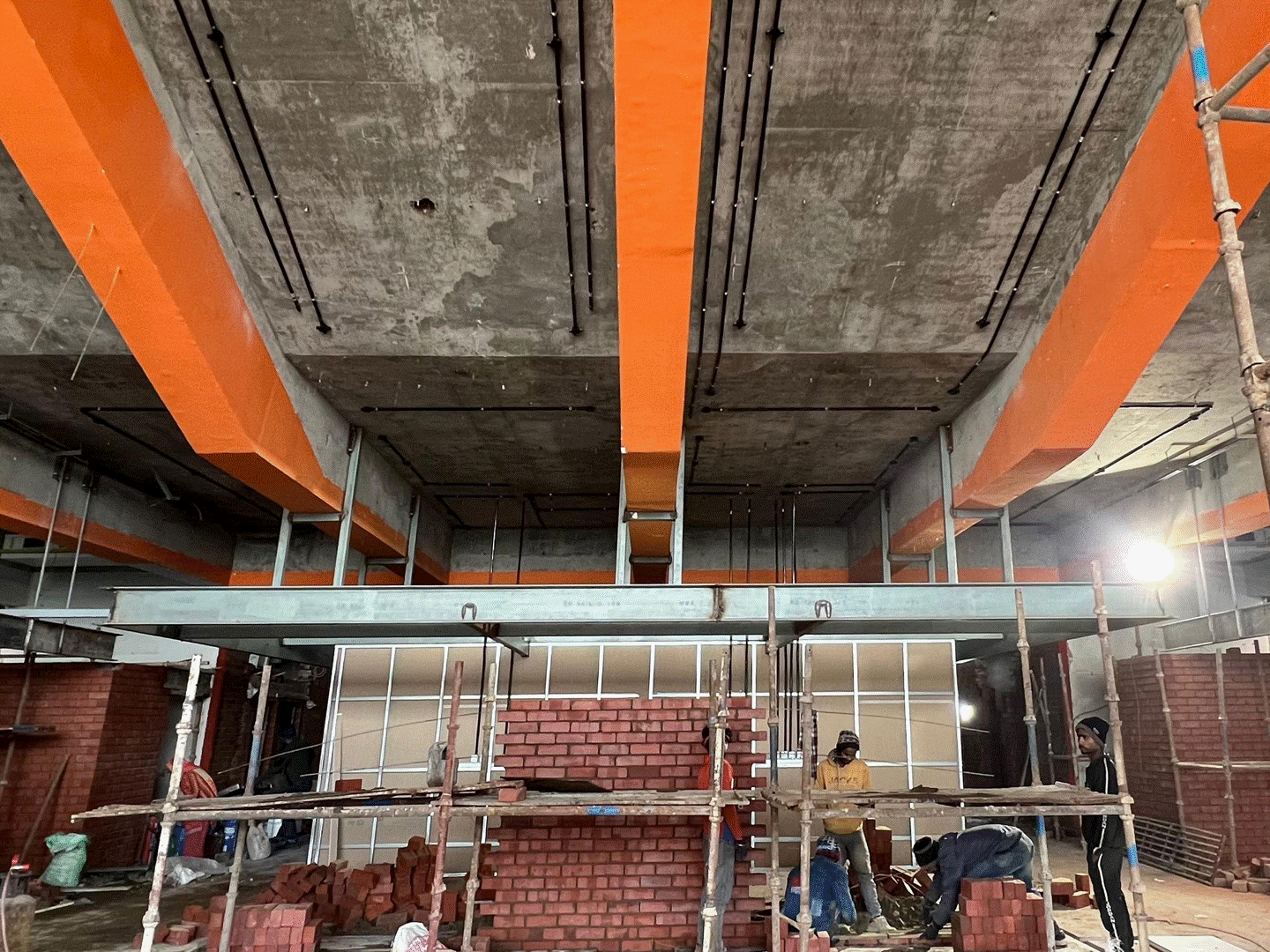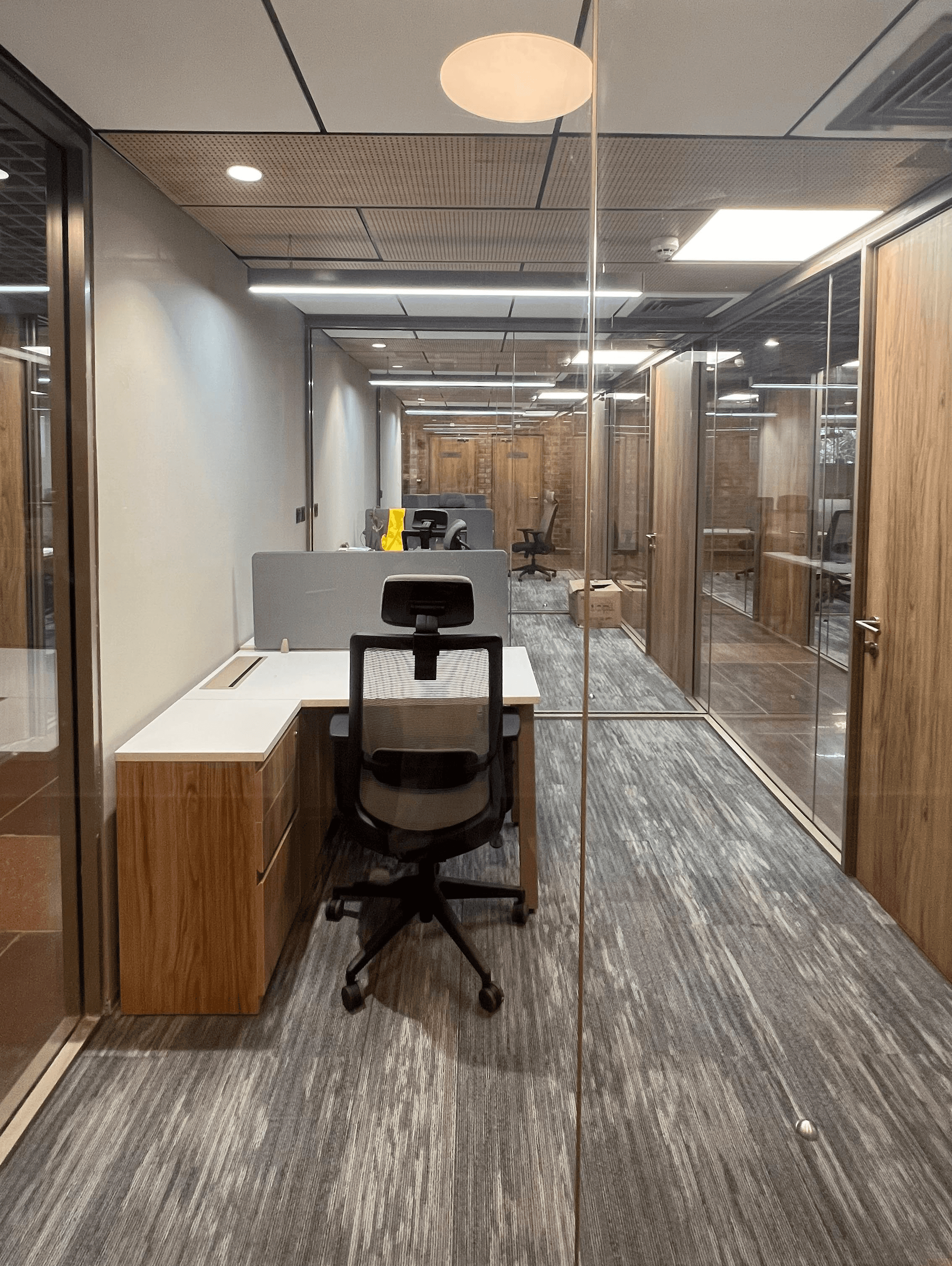 Once a dated canteen with heavy concrete beams and exposed services, the space has been transformed into a light-filled, two-level workspace that blends industrial character with contemporary comfort. We retained the original concrete frame and threaded a lightweight steel mezzanine around a double-height heart. Linear LEDs trace the beam rhythm; reorganized HVAC and acoustics sit within crisp bulkheads. Ground level hosts reception, Workdesks, Cabins, lounges and informal meeting pockets; above, Pods, and training desks. Warm brick, timber joinery and red-stone flooring balance the industrial shell. Prefabricated, low-demolition construction minimized waste, cost and downtime, delivering a flexible working environment.