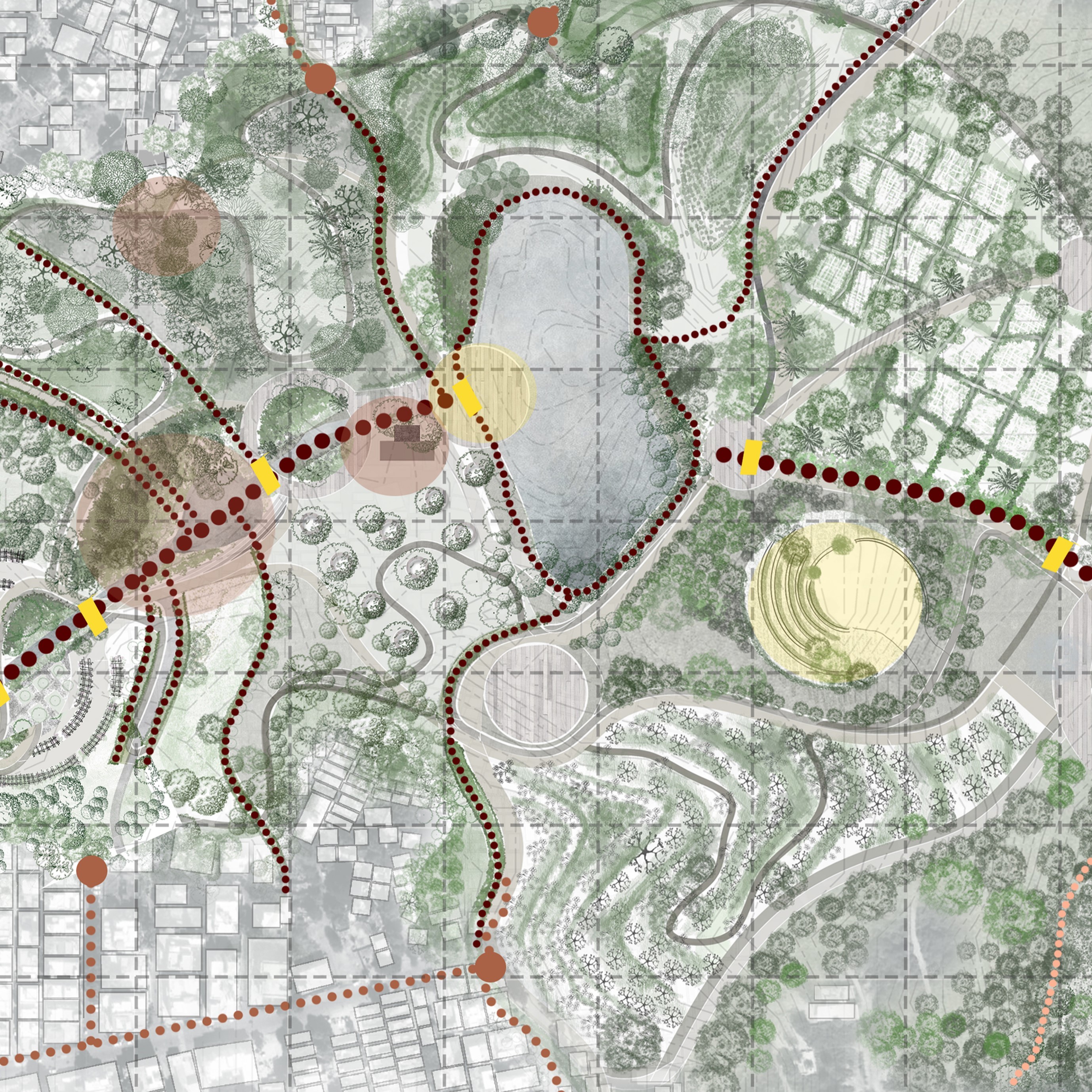 Re-imaging lost spaces and association through editic montages. Reds are depicting the lost spaces and association while blacks are proposed ideas on existing situations.
